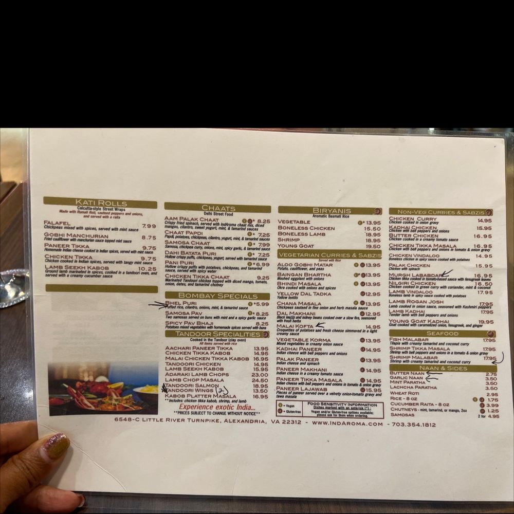 IndAroma offers a variety of non-veg curries, biryanis, and vegetarian options. Their Chicken Tikka Masala stands out for its flavorful blend of spices, while the Vegetable Biryani is a delicious vegetarian choice. Customers rave about the great service and the cozy ambiance. The menu caters to diverse dietary needs, with vegan and many vegetarian options available. IndAroma also offers catering services, perfect for events or gatherings. Reviews highlight the tasty dishes and generous portions, making it a hidden gem in Alexandria, VA. With an eclectic menu and a welcoming atmosphere, IndAroma is a must-try for Indian food enthusiasts.